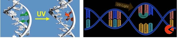 ◆ 生物-滅菌,細菌中的脫氧核糖核酸(DNA)、核糖核酸(RNA)和核蛋白的吸收紫外線的強