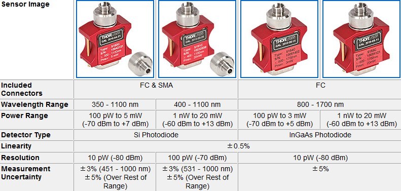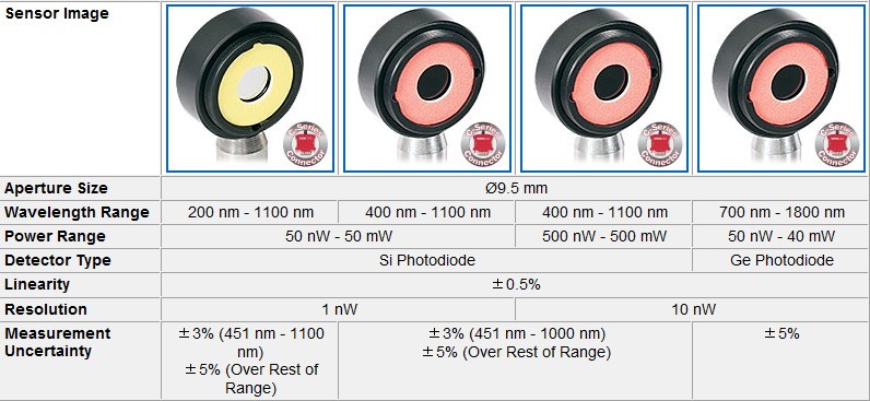 M520 幾乎與所有的功率和能量探頭相兼容(光電探頭,熱敏探頭,熱釋電探頭),應(yīng)用于從紫外到中紅外波段的檢測。它將光電探頭(超薄型, 積分球型, 光纖型)輸出電流從10 pA到5 mA間劃分了6個(gè)量程,對熱敏探頭的熱電電壓從100 nV到1 V劃分為4個(gè)量程,兩者都可自動或手動設(shè)置。表頭對熱釋電探頭的電壓從100 μV 到100V有4個(gè)手動可調(diào)量程,觸發(fā)電平可調(diào)節(jié),范圍從0.1%到99.9%。 用戶可以使用定制的探頭,并上傳一個(gè)響應(yīng)曲線來進(jìn)行光譜響應(yīng)校正。此外該表頭還配有一個(gè)USB2.0接口可用于遠(yuǎn)程連接控制。以下概述了所有兼容的探頭和適配器。