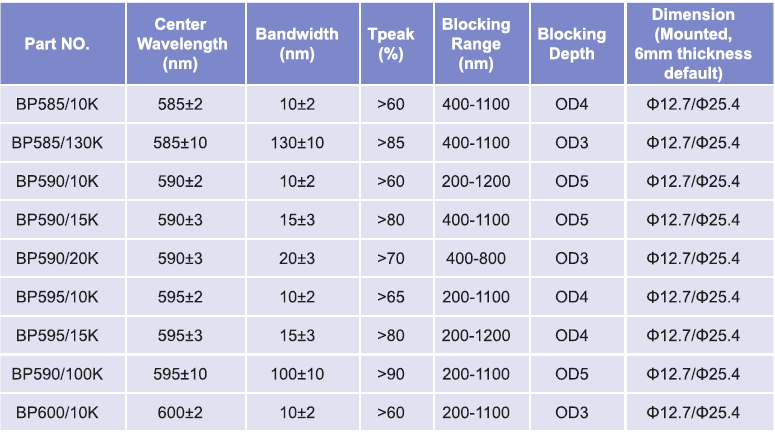 4、庫存:上萬種標(biāo)準(zhǔn)及非標(biāo)準(zhǔn)帶通濾光片產(chǎn)品現(xiàn)貨供應(yīng)