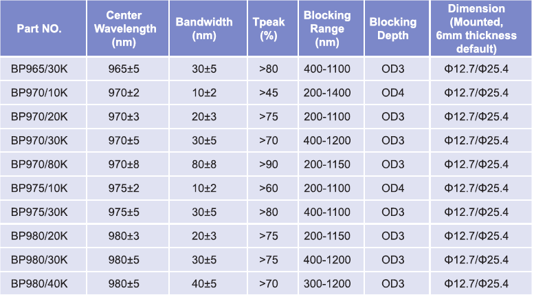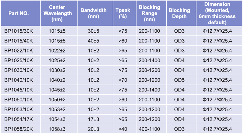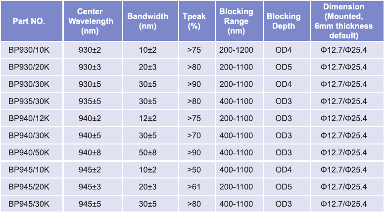 帶通濾光片波長(zhǎng)范圍:910nm-925nm