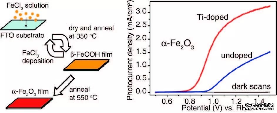 高價離子( 如四價離子) 摻雜等為n型摻雜,可以提高Fe2O3作為光陽的氧化性能。
