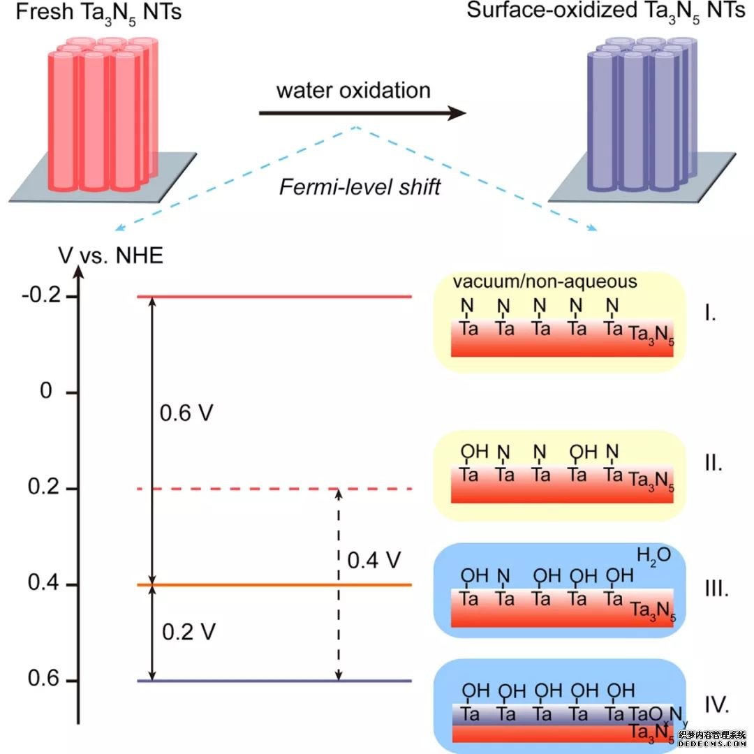 Dunwei Wang課題組在Chem發(fā)文,發(fā)現(xiàn)在光電化學(xué)分解水過程中,Ta3N5的表面會自氧化生成一層非 晶的富氧層,導(dǎo)致費(fèi)米能級下降,終導(dǎo)致其性能衰減。 因此,對Ta3N5的表面進(jìn)行鈍化處理,不僅能提高性能,對其長期穩(wěn)定性的提高也十分重要。