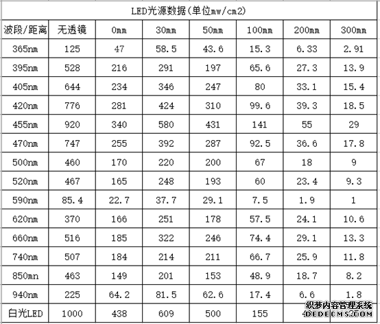 紫外可見大功率均勻LED數(shù)據(jù)表:
