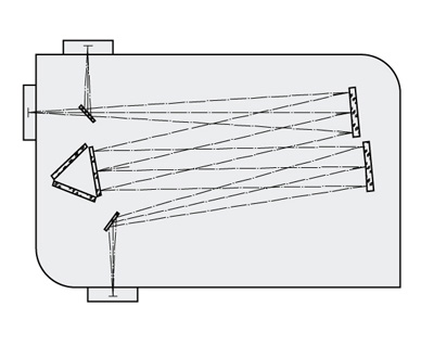 光學(xué)室和機(jī)械傳動(dòng)室嚴(yán)格分開,避免后者產(chǎn)生雜散光及潤(rùn)滑油微量揮發(fā)對(duì)光學(xué)件的污染