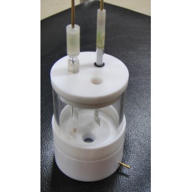 聚四氟乙烯蓋子,一般蓋子有兩個孔(可插參比電和對電),也可配有進(jìn)氣和出氣管(定制)。