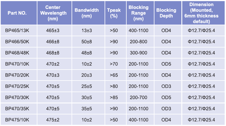 帶通濾光片波長(zhǎng)范圍:465nm-475nm