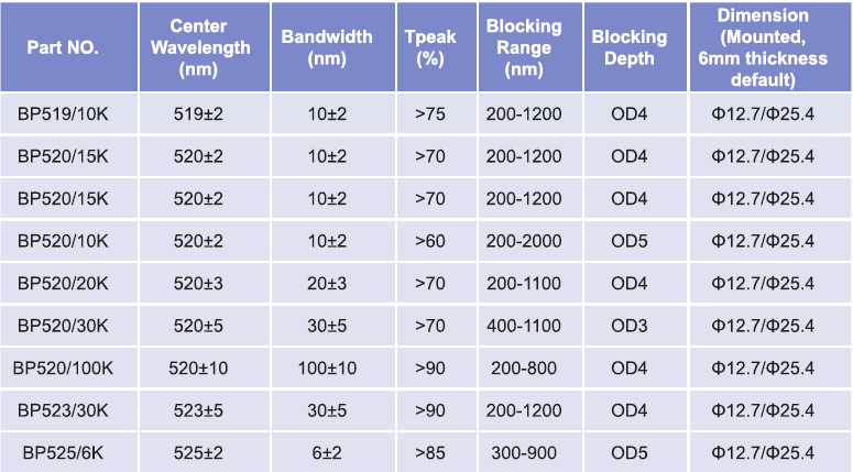 4、庫存:上萬種標(biāo)準(zhǔn)及非標(biāo)準(zhǔn)帶通濾光片產(chǎn)品現(xiàn)貨供應(yīng)