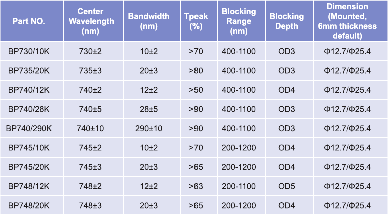 4、庫存:上萬種標準及非標準帶通濾光片產(chǎn)品現(xiàn)貨供應(yīng)