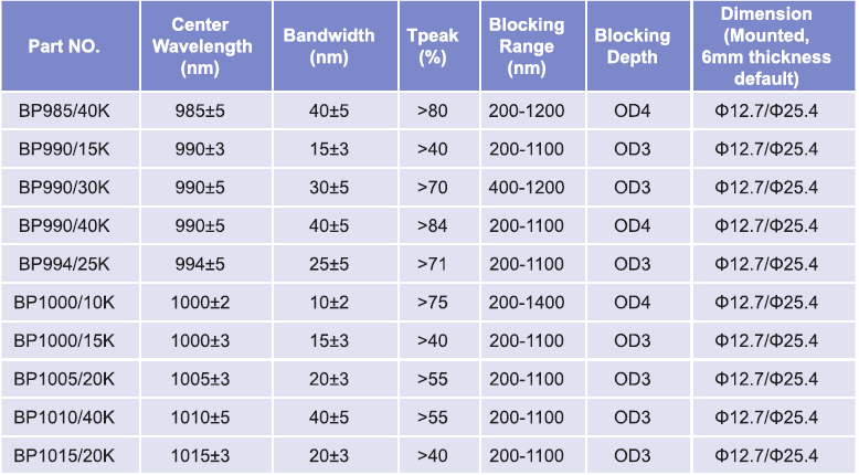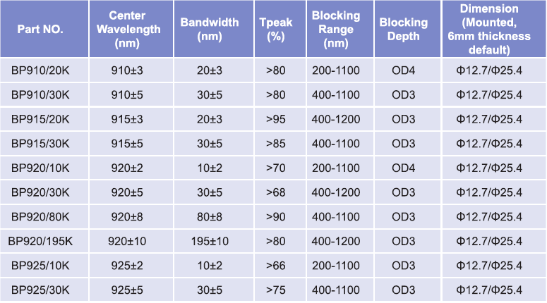 帶通濾光片波長(zhǎng)范圍:910nm-925nm