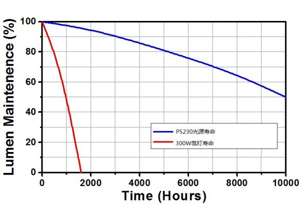 使用壽命比傳統(tǒng)氙燈長5倍(>10,000小時(shí)**)
